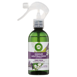 Room Sprays Refresh and enhance the air with Room Spray air fresheners from Air Wick. Air Wick Odour Neutalising Spray Fresh Dew & Jasmine Air Wick Odour Neutralising Air Spray Eucalyptus & Freesia Air Wick Odour Neutralising Air Spray Lavender & Lily of the Valley Air Wick Cool Raspberries and Lime Spray